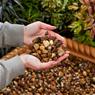 The Quartz Gravel is a naturally quarried product which may result in slight variations in formation, size, colour or shape. Quartz Pea Gravel is mainly brown with an addition of white and natural stone colours. The rounded chippings have a buff texture.