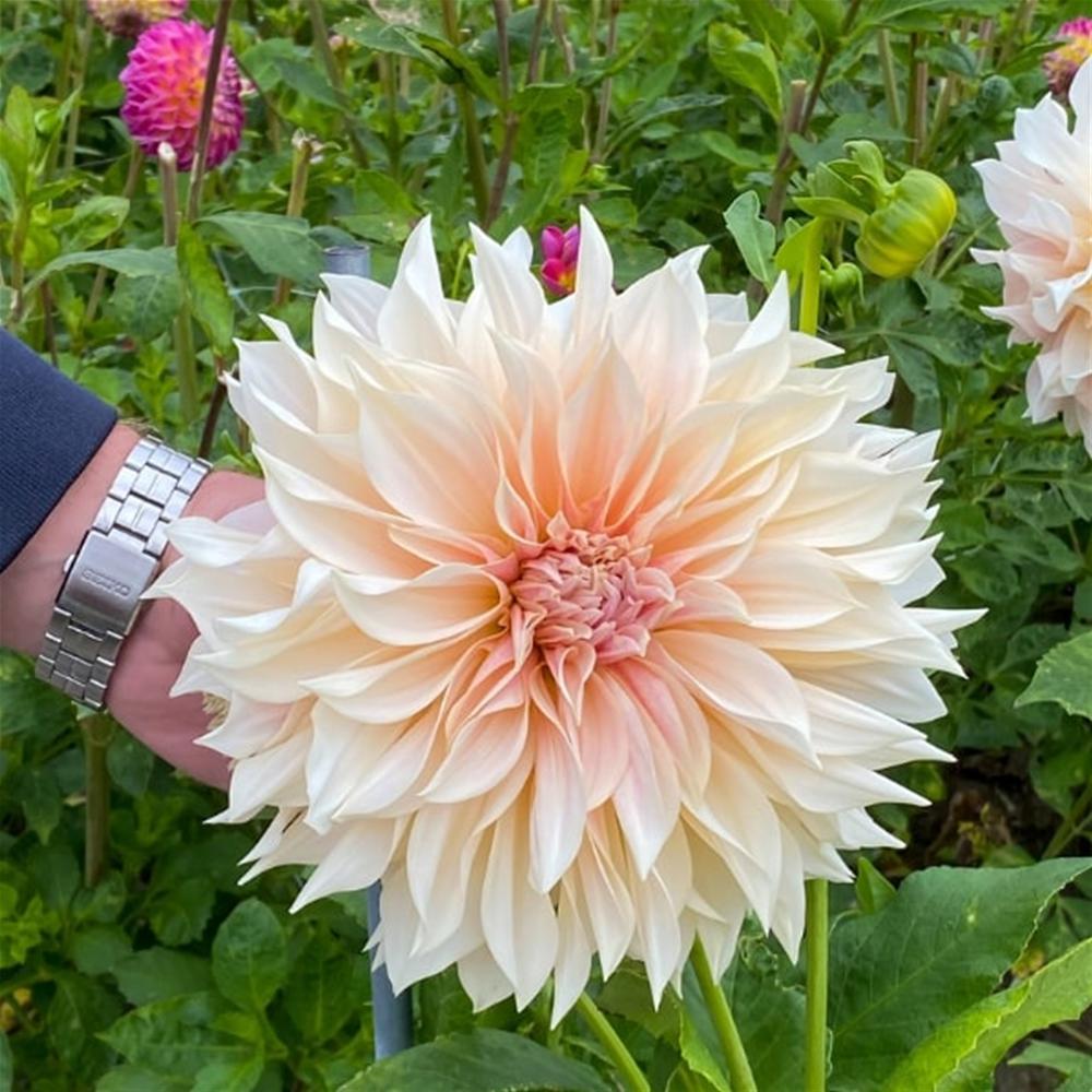 Dahlia Caf au Lait is celebrated for its enormous. softly coloured blooms and elegant form. Flowering generously from summer through to autumn. it brings romance and sophistication to borders and cutting gardens. while its long stems and unique colouring make it a standout choice for bouquets and floral displays.