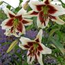 Lily Miss Lily is a spectacular show-stopper with unique bicolour blooms and towering stems reaching up to 2.5m. Each fragrant flower features a rich red centre edged in pearly white. creating striking contrast that draws the eye. Perfect for borders. pathways. or creating a lush garden screen. these narrow. upright lilies provide elegance without taking up much space. Atop each plant. a fanfare of large blooms shines above surrounding foliage. adding drama. sophistication. and a fragrant. uplifting presence to summer gardens.