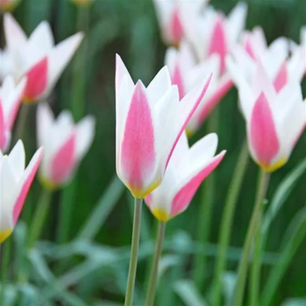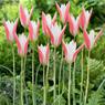Tulip 'Lady Jane' is a graceful and charming variety known for its delicate, pointed petals in soft pink with creamy white edges. As the blooms open wide in the sun, their elegant two-tone coloring is revealed in full splendor. This heirloom tulip is a true springtime gem, creating a delightful display with its compact size and refined beauty. Ideal for rock gardens, borders, or container planting, Lady Jane grows to around 20cm tall and blooms reliably from March to April. Its slender stems and multiple blossoms make it perfect for naturalizing and adding a soft touch of early-season color to your garden.