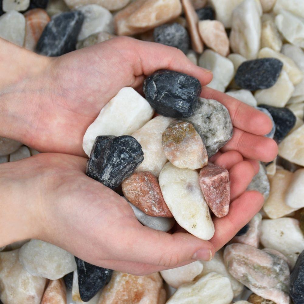 This stunning mix of pink, grey and white pebbles are the newest addition to our exotic Flamenco range. These beautiful pebbles have a wonderful natural sparkle, perfect for brightening up your pathways or garden.