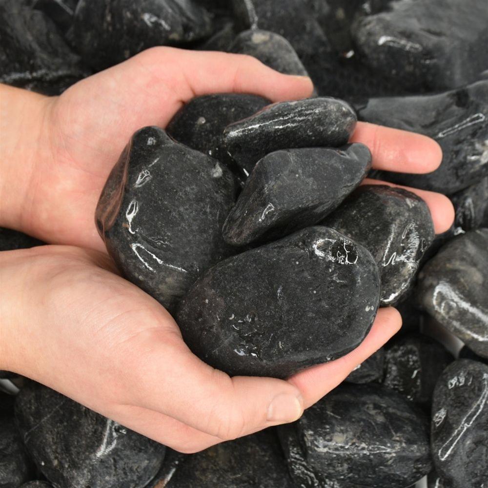 Our Midnight Black cobbles is a naturally quarried product which may result in slight variations in formation, size, colour or shape. Midnight Black is a deep black when wet and a charcoal colour when dry.