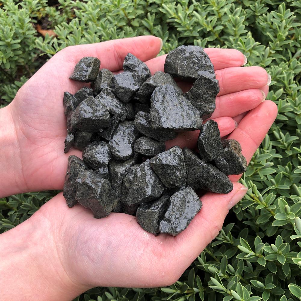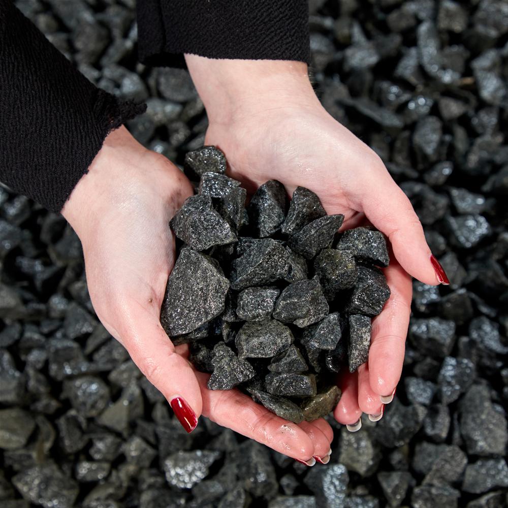This gravel shows a grey colour when dry, yet reflects a beautiful black colour when wet; making this a versatile product. it is available as an angular gravel and is a naturally quarried product, which may result in variations of size and shape.