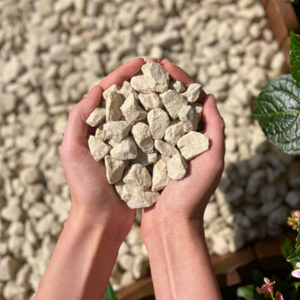 These chippings offer a classic mellow buff colour. In daylight they offer a cream colour, adding a contemporary look to any garden. Cotswold chippings come in angular shapes with a buff texture. This is a naturally quarried product and may result in slight variations in formation, size, colour or shape.