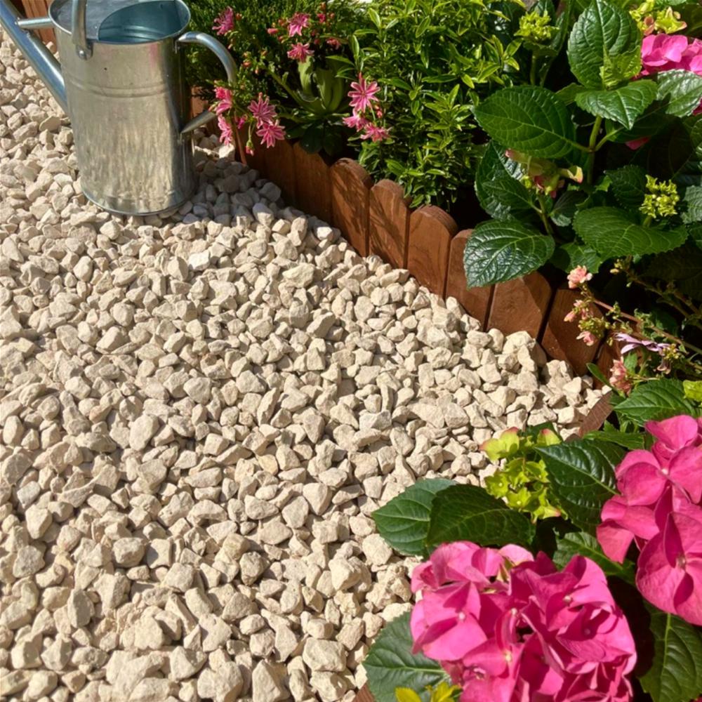 Cotswold buff stone chippings are a very crisp cream stone chipping which will bring the needed brightness to your garden. Cotswold buff gravel is compacted to make it an ideal solution for driveways and paths. This particular gravel will create an instant impact on any path, driveway or garden border; making it the perfect garden chipping. Many of our customers use them as a dressing for pots and planters to add extra style.