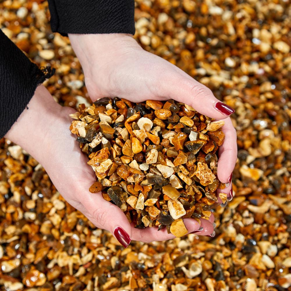 The stunning colours of the Golden Gravel combines yellows, creams and browns which creates a contemporary, elegant look for any garden. It is often referred to as Golden Flint Gravel, Solent Gravel, Corn Gravel or Yellow Shingle. The 10mm Golden Gravel is extremely compact which makes this perfect for garden pathways, in between patio slabs and general ground cover.