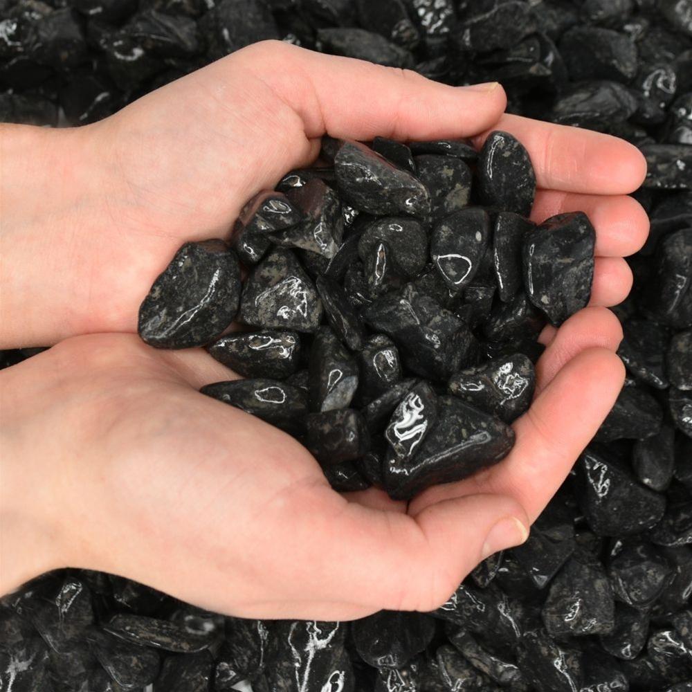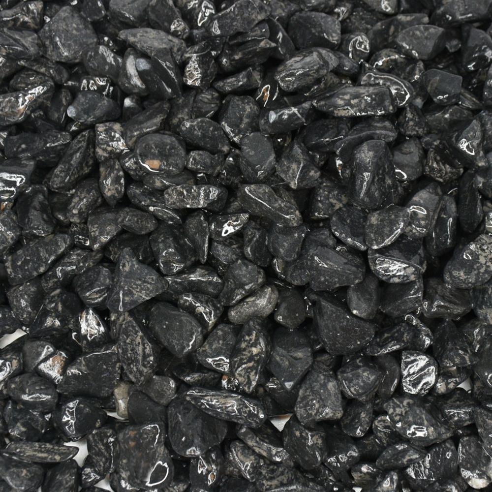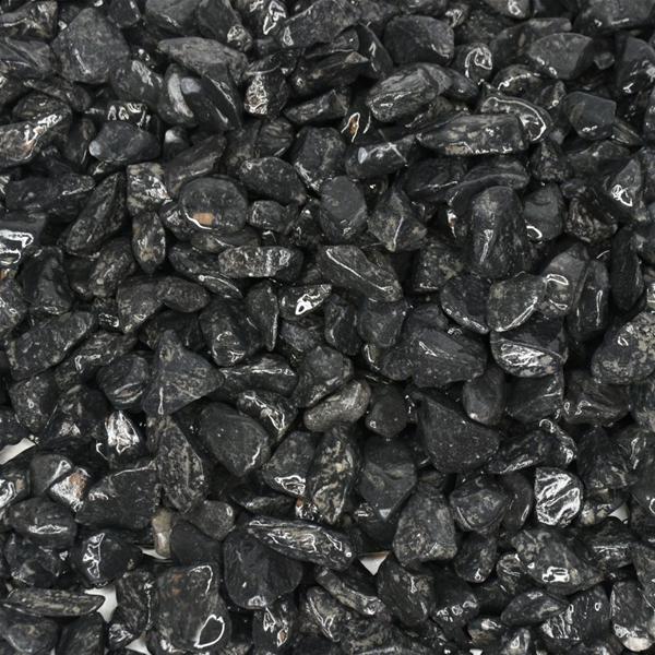 Our Midnight Black chipping is a naturally quarried product which may result in slight variations in formation, size, colour or shape. Midnight Black is a deep black when wet and a charcoal colour when dry.