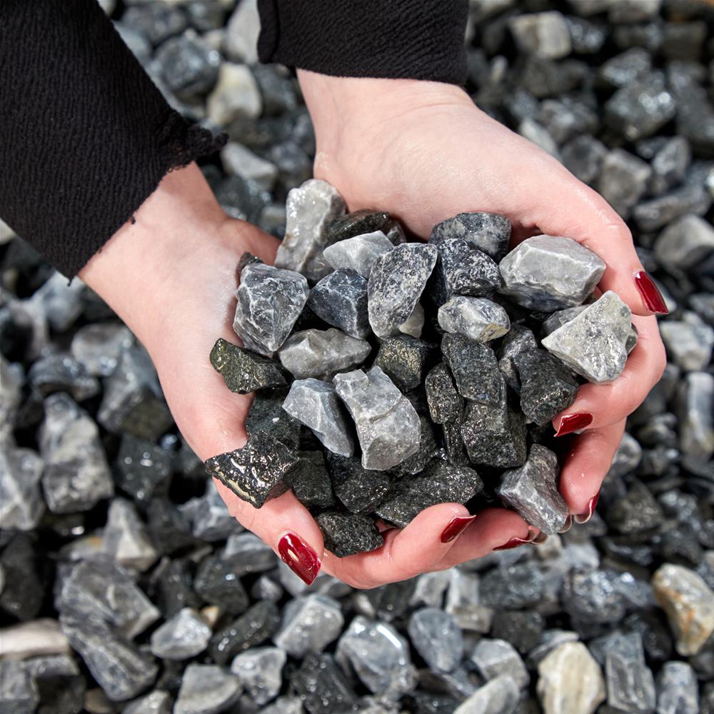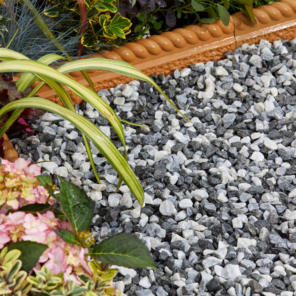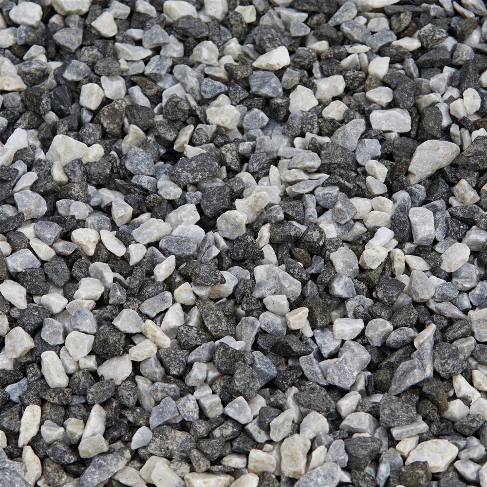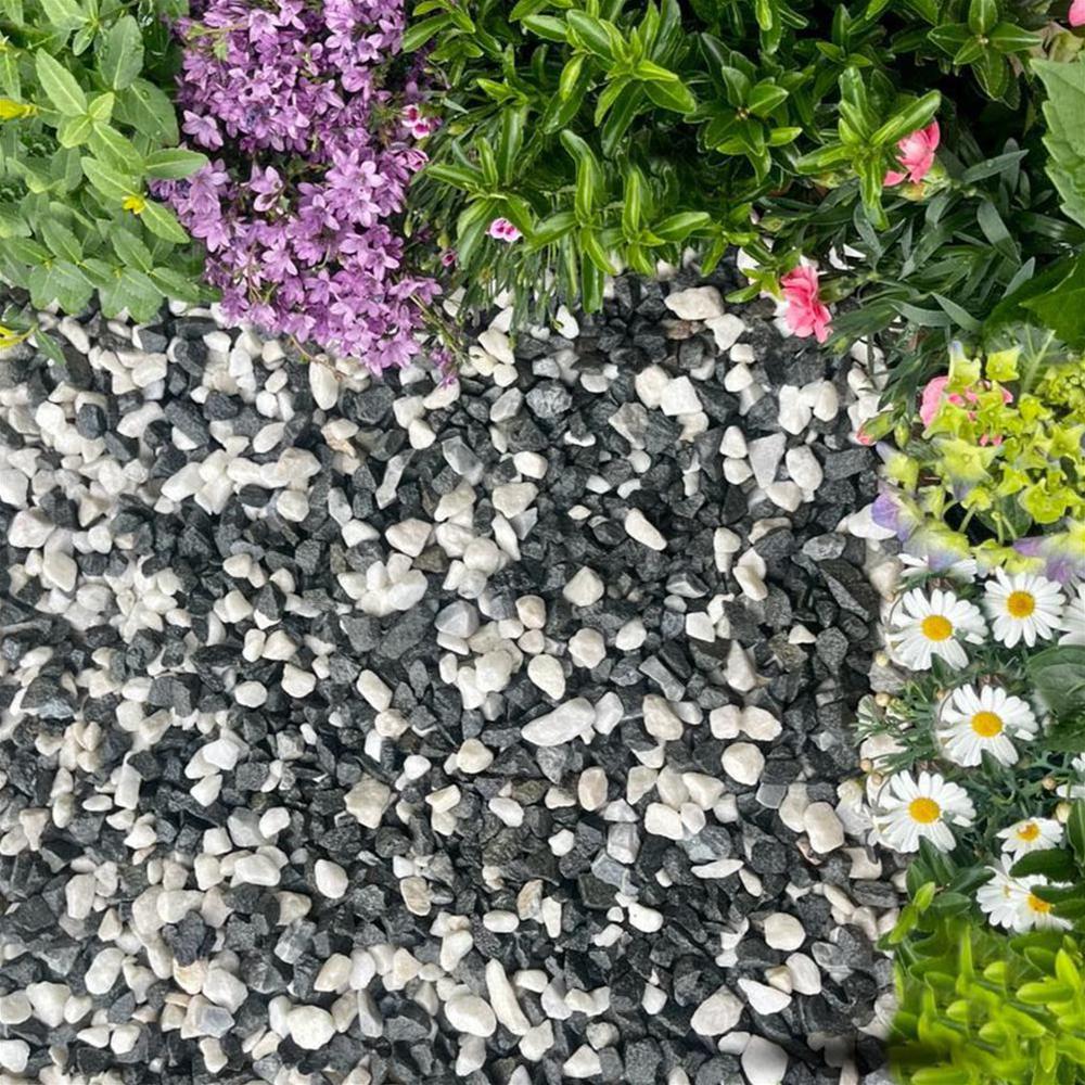 Panda Gravel 20mm Gravel is extremely hard-wearing due to its marble properties. The modern look is made up of Black Basalt, Polar White and Everest Icey Blue; making it a fantastic addition to any garden. Due to the raw material properties once wet you will find subtle sparkles within the gravel.