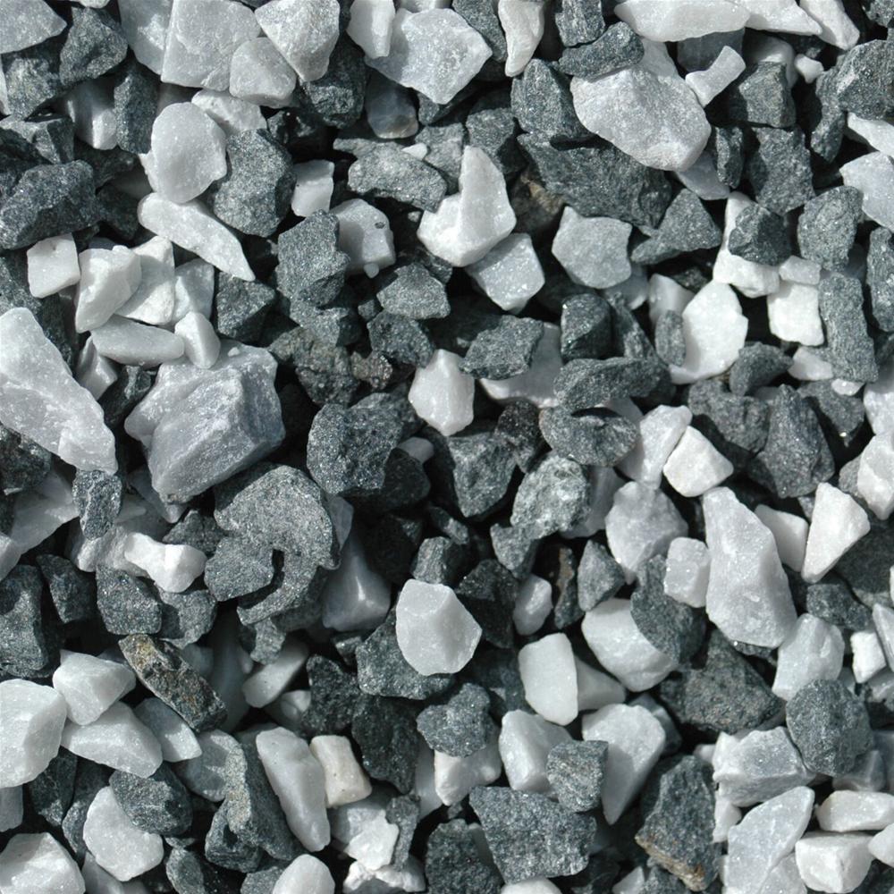 Panda chippings have a stunning contemporary feel and look great against any decorative water features and landscapes. When wet the darker parts of the gravel look black, changing to dark grey when dry. As this is a mix of naturally quarried products there may be a slight variation in formation, size, colour or shape.