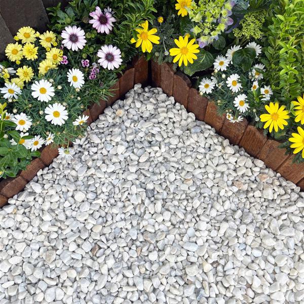 Polar White is a naturally quarried product which may result in slight variations in formation, size, colour or shape. Polar White is a white colour and is angular in shape. It looks stunning in any garden when it glistens with to the marble in it.