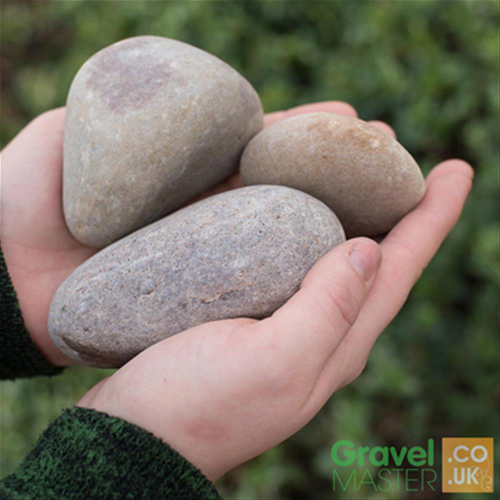 Scottish Cobbles in the 50-80mm size are perfect for the use on patio areas, borders and rockeries. The larger size makes the natural colours of browns, pinks, greys and browns stand out in any garden area. It is advised that you do not use these primarily for pathways because they can prove to be difficult to walk on.
